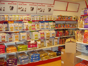 Intriör från vår kattmatsavdelning. Vi har ett stort sotiment av de flesta kända fabrikat |